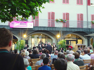We then had time to wander in small groups. We mostly used this time to shop and eat lunch. We got back on the bus for a 2 hour drive back, during which most of us fell asleep. We then went home to change for our concert and went to the music school to prepare for our last concert. The venue was beautiful. There's a square in the middle of town that is used for farmers' markets, outdoor dining, and concerts in the summertime. It is surrounded on three sides by buildings, and the main footpath lines the fourth side, which created beautiful acoustics. Chairs are provided, but there weren't enough chairs for all, so a lot of people were standing or sitting on the wall in the back of the square. It was humbling to see that many people had shown up for our concert and it was a reminder of the power of music and of exchange: both only work if people are willing to listen. The Bietigheim Band went first, and they played a beautiful variety of music that showed off the talent of their musicians. After they performed, we had the chance to play. We didn't get to play our entire set, but the audience appeared to enjoy the pieces we did play. One of the boys in my host family told me afterwards that he had really, really enjoyed the Stars Wars medley, which made all the practice and frustration and tears spent on that piece all worth it. We played our final song (Stars and Stripes Forever March) with the Bietigheim Band, and I couldn't imagine a better way to end the classical portion of the concert than with a public showing of musically unity. Then the jazz band took the stage. They played a variety of jazz types to give everyone a taste of the different flavors of American Jazz. The soloists were somehow even better tonight than they were at the last concert, which excited the entire crowd. However, we couldn't stay long to celebrate; we had to get home to pack up and get whatever sleep we could.